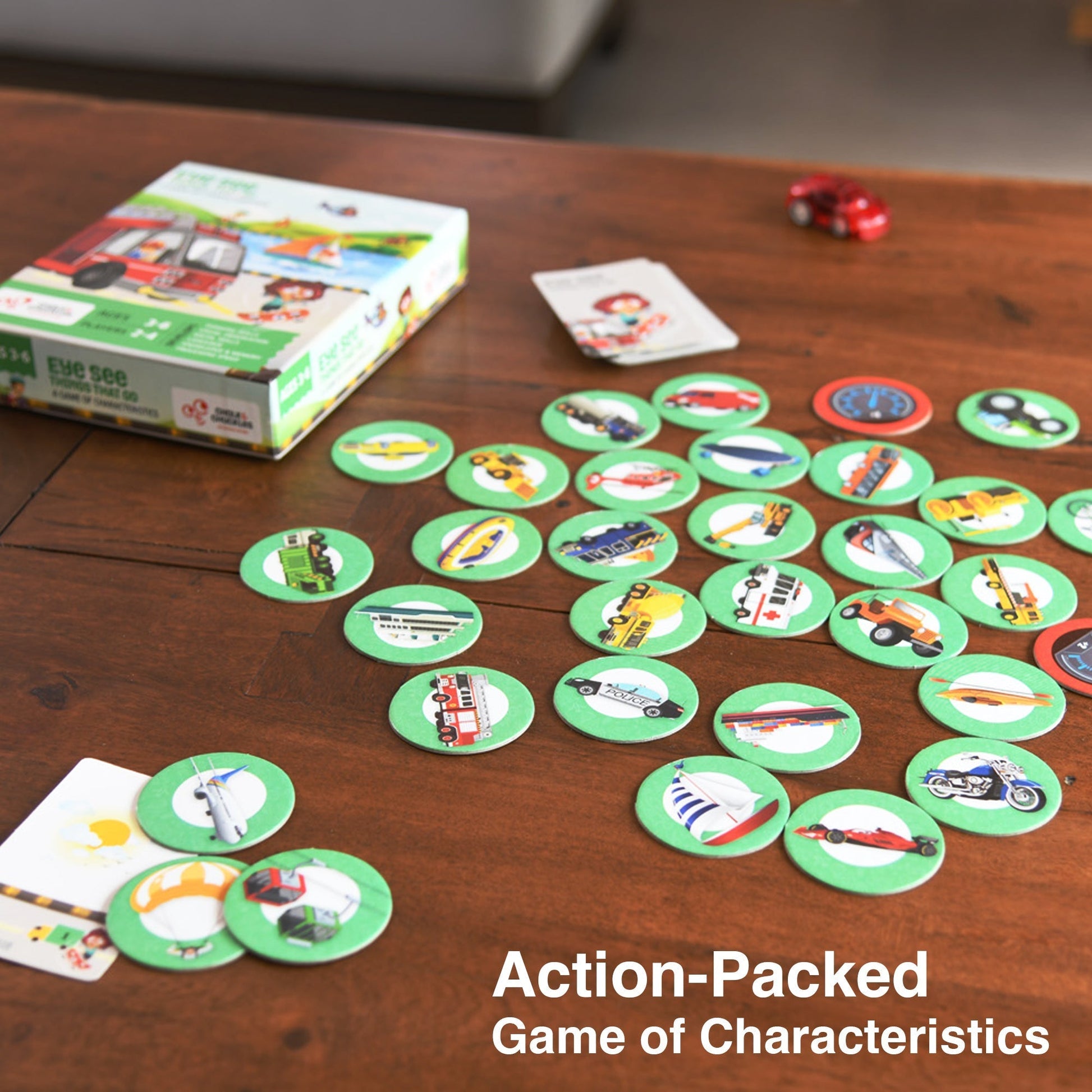 - Fun for the Whole Family- Designed by preschool teachers to ensure age-appropriate, playful learning and most of all to be entertaining and educational for all ages. Eye See Things That Go is a super fast game that will get everyone thinking and rushing to grab tokens at the same time. Even more exciting is the Bonus Speed Token, where you can name a vehicle not on the table for extra points