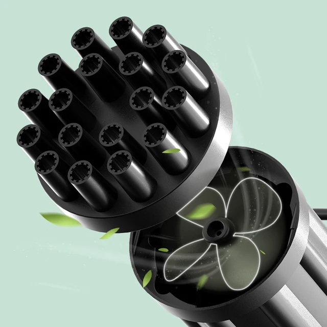 It functions as an automatic bubble maker and can also be used as a fan by detaching the bubble head.