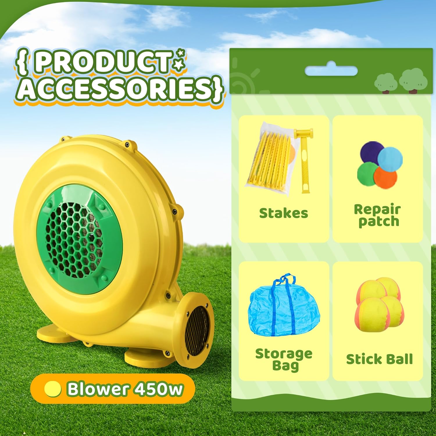 Inflatable Bounce House for Kids with Blower, Bouncy Jumping Castle with Slide, Large Bounce Area Cute Theme Thick and Durable for Outdoor Indoor Play