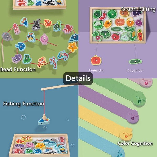 - Realistic Design: The realistic wooden fishing toys are colorful and realistic in design, helping children develop basic skills such as color and shape recognition. This wooden beaded also allows for matching through word learning, perfect for preschoolers who love to explore while playing.